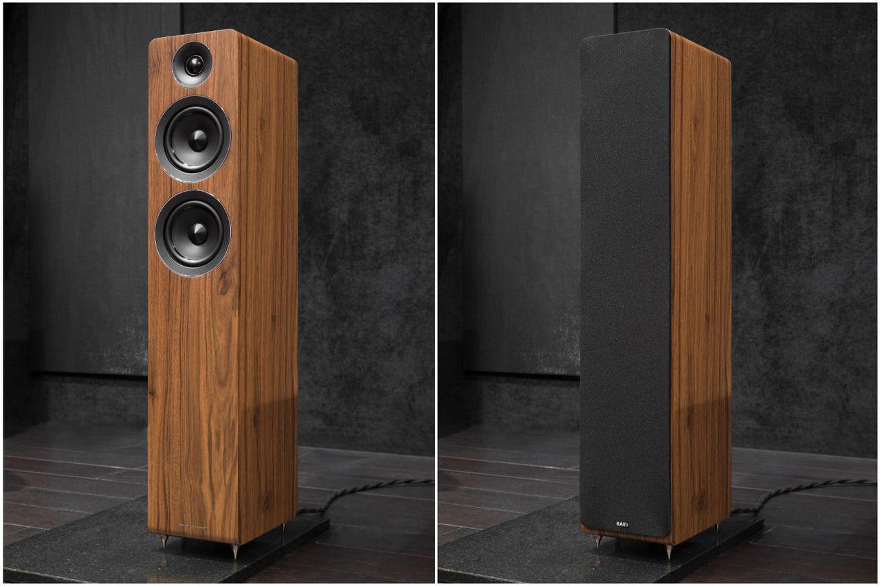 Нові AE109 виглядають виключно гармонійно — компактні, дуже акуратні напольники. Невеликі СЧ/НЧ-динаміки і рупор твітера встановлені так, що на поверхні фланців не видно жодного гвинта або шурупа. Корпус має округлені грані, при цьому скруглення використані як елемент дизайну, наприклад, бічні грані верхньої панелі візуально пом'якшують контур, як і плавний перехід на стику дна з передній і задньою панеллю. Навіть щілинною порт фазоінвертора окреслено нечітко — його внутрішня поверхня плавно перетікає в площину корпусу. У підсумку, з якого боку на ці колонки не глянь, погляд ковзає вільно, ні за що не чіпляючись.
